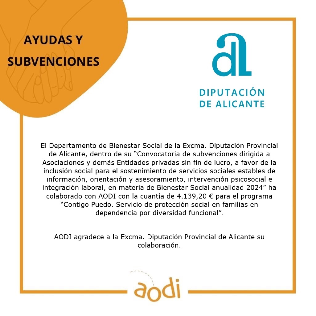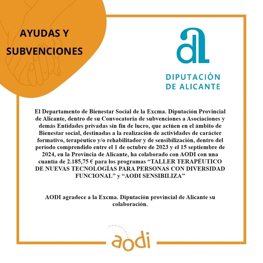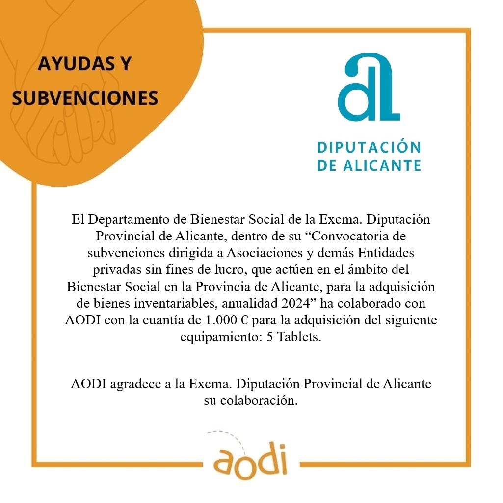 AODI agradece a la Excma. Diputación Provincial de Alicante
